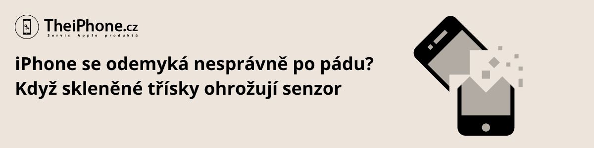 Pokud se iPhone po pádu odemyká nesprávně a máte podezření na skleněné třísky v senzoru, jedná se o kombinaci mechanického poškození a ohrožení citlivých komponent: